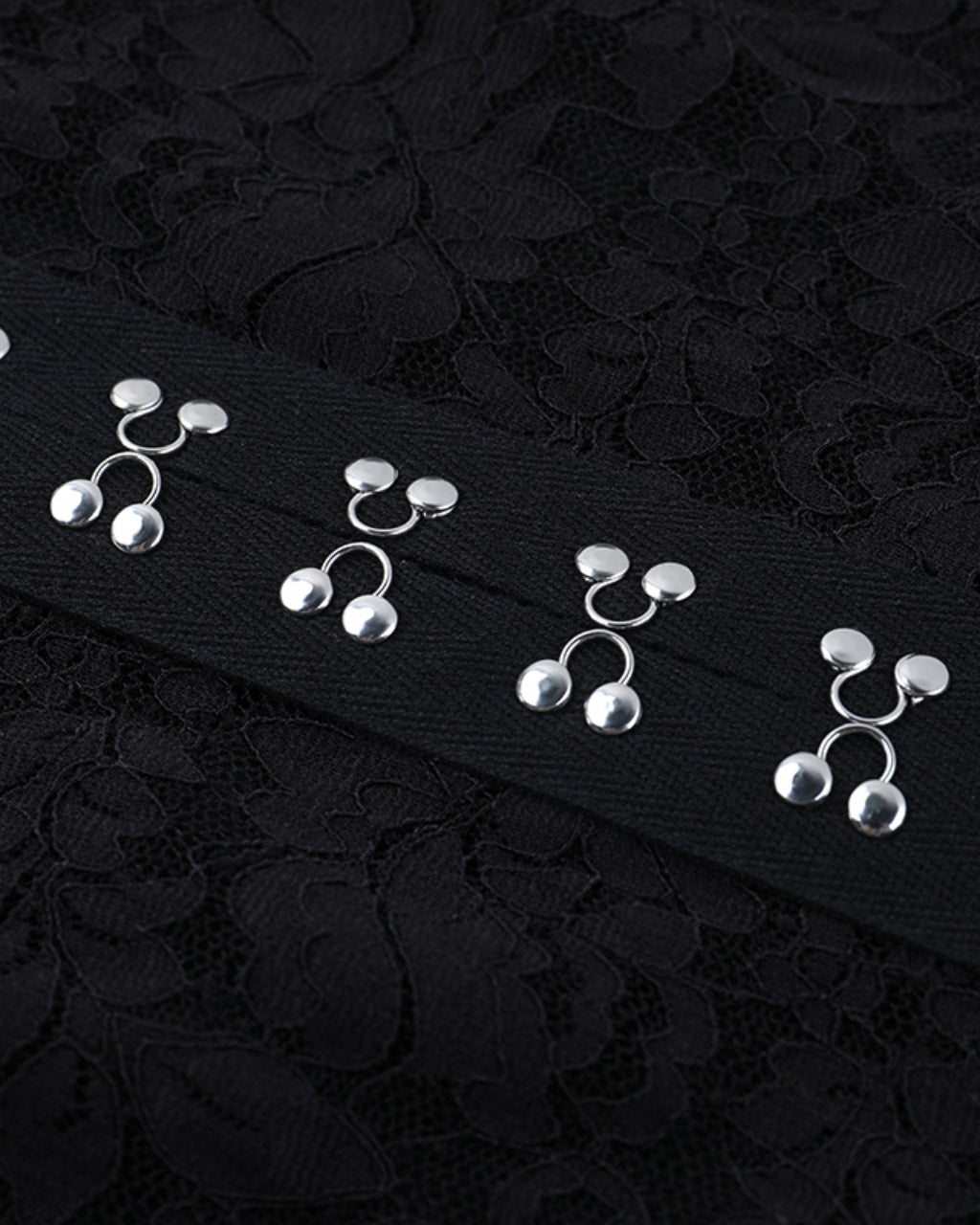 To propozycja dla miłośniczek mrocznej, uwodzicielskiej elegancji. Góra tego kombinezonu została założona na wzór gorsetu, obszytego zjawiskową koronką, która zmysłowo odkrywa skórę. Długie, nakładające rękawy i głęboka czerń, całościowe, uniwersalne charakter w stylu „dark glamour”. Rozkloszowane nogawki doskonale tworzą się z wysokimi szpilkami, tworzącymi niezwykle kobiecy i drapieżny wygląd.